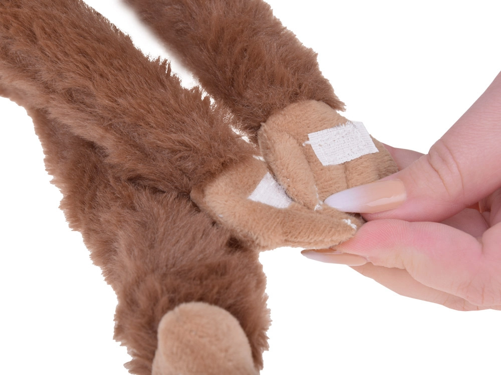 Deze superzachte pluche aap is gemaakt van hoogwaardig, aangenaam aanvoelend materiaal en valt op door realistische details. Dankzij de lange ledematen en de kleefstrips op de pootjes bevestig je hem eenvoudig aan een stang, bedje of rugzak – een geweldige reisgenoot, voor in de kinderkamer en voor rustig in slaap vallen.