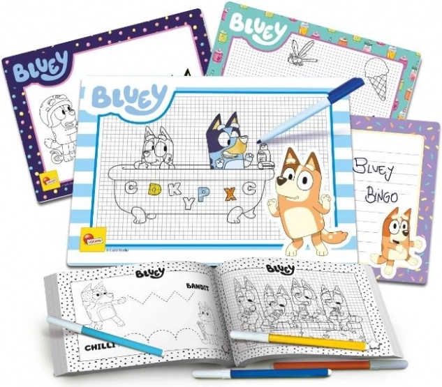 Deze creatieve set is een schot in de roos voor alle fans van de serie BLUEY. Dankzij het werkboek met voorbeeldpagina's gerangschikt op moeilijkheidsgraad leren kinderen eenvoudig de basisvormen en -streken. Tekenen op de uitwisbare borden is herbruikbaar – gewoon tekenen, wissen en opnieuw beginnen, zo komt er nooit een einde aan oefenen en plezier.