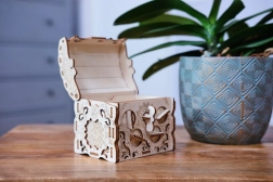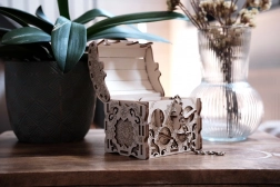 Maak van geven een avontuur. De elegante houten doos met subtiele uitsnijdingen en decoratieve details fungeert als een mechanische puzzel – de ontvanger moet de juiste stappen vinden om bij de verborgen verrassing te komen. Dankzij de hoogwaardige afwerking is de box niet alleen functioneel, maar ook een decoratief element voor je interieur.