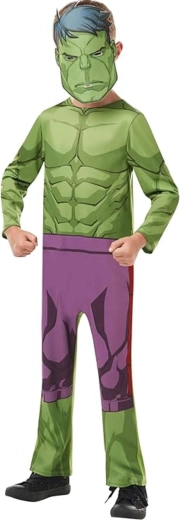 Dit HULK-kinderkostuum bootst trouw het uiterlijk van de geliefde superheld na – het groene lichaam met opvallende musculatuur en de typische paarse “broek” zijn direct op de zachte stoffen jumpsuit geprint. Er is ook een gezichtsmasker inbegrepen dat de hele look perfect afmaakt.