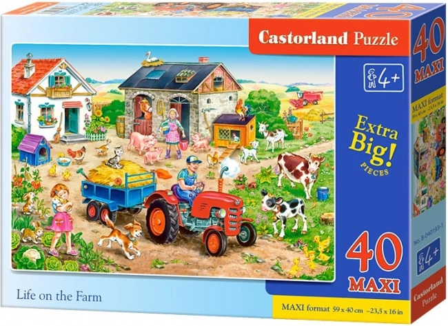 Grote, kleurrijke puzzel met een boerderijthema die kleine bouwers zal verrassen. De set bevat 40 MAXI stukjes en vormt na het leggen een afbeelding van 59 × 40 cm. Ideaal voor kinderen vanaf 4 jaar – grote stukjes liggen goed in de hand en de hoogwaardige afwerking van CASTORLAND garandeert duurzaamheid en veiligheid.