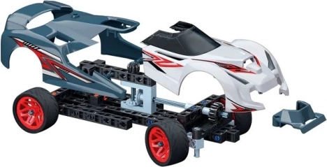 Het modulaire systeem van onderdelen laat je eerst een stevig chassis bouwen en vervolgens eenvoudig designpanelen met de aantrekkelijke lijnen van een hypersportwagen bevestigen.
