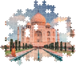 De puzzel bevat een gedetailleerde illustratie van de Taj Mahal, inclusief zijn iconische koepels en tuinen, perfect voor liefhebbers van architectuur.