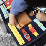Bevat 14 verschillende elementen, zoals ritsen, gespen, knopen en meer, die praktische vaardigheden en zelfstandigheid bevorderen.