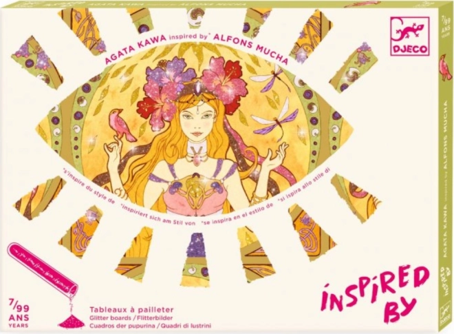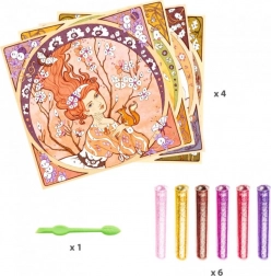 Glanzend zandstralen DJECO biedt prachtige illustraties geïnspireerd door Alfons Mucha. Deze activiteit stelt kinderen in staat kennis te maken met het werk van deze grote meester van de art nouveau en tegelijkertijd schitterende glanzende afbeeldingen te maken.