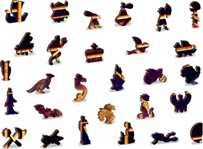 De met laser uitgesneden houten puzzel van WOODEN CITY met zijn speciaal gevormde stukjes is ongelofelijk leuk. Een deel van de stukjes is gemaakt in de vorm van dieren, gebouwen of voorwerpen, waarvan het eindresultaat wordt versterkt door laser-geaccentueerde details. Deze stukjes kunnen afzonderlijk staan als kleine figuurtjes. Het leggen van een puzzel met verschillend gevormde stukjes is lastiger en vormt een grotere uitdaging dan het leggen van een klassieke puzzel. Bovendien is de puzzel dubbelzijdig: je kunt leggen op afbeelding (voorkant) of op vorm (achterkant met patroon).