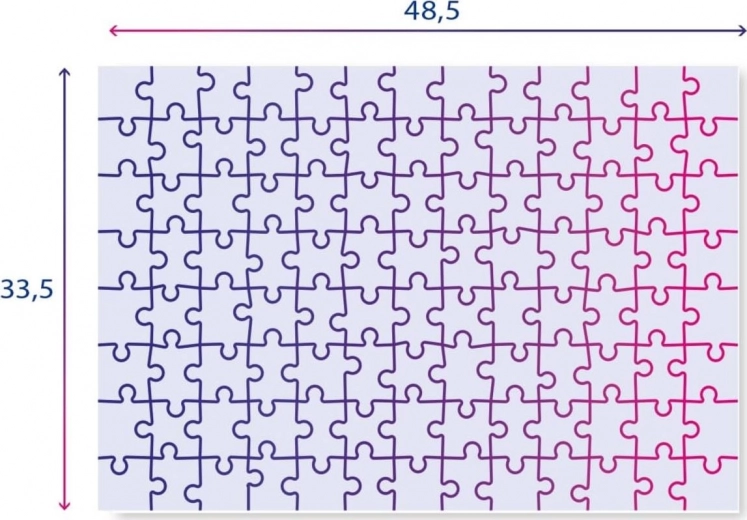 Afmeting van de gelegde puzzel ca. 48,5 x 33,5 cm