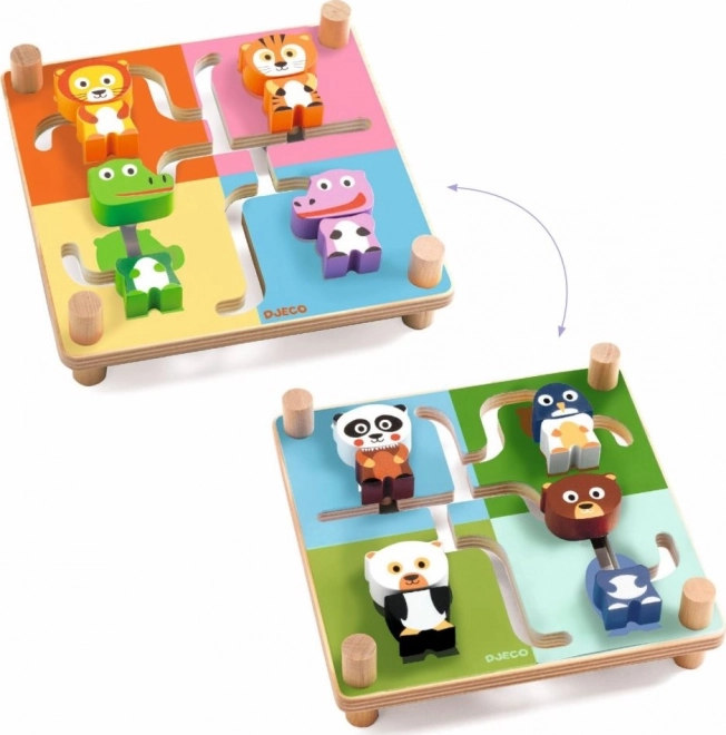 Stel de dieren samen uit twee delen in het schuifdoolhof. Zodra 4 dieren zijn samengesteld, wordt het doolhof omgedraaid en worden aan de andere kant nog 4 dieren samengesteld.