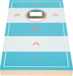 Dit hoogwaardige houten speelbord brengt twee populaire activiteiten samen in één compact design. Aan de ene kant speel je cornhole – het werpen van stoffen zakjes in een gat, aan de andere kant tafelhockey – een puck wegslingeren met een elastiek richting doelen. Dankzij de pijlmarkering voor punten in plaats van cijfers kunnen ook jongere kinderen de score bijhouden.