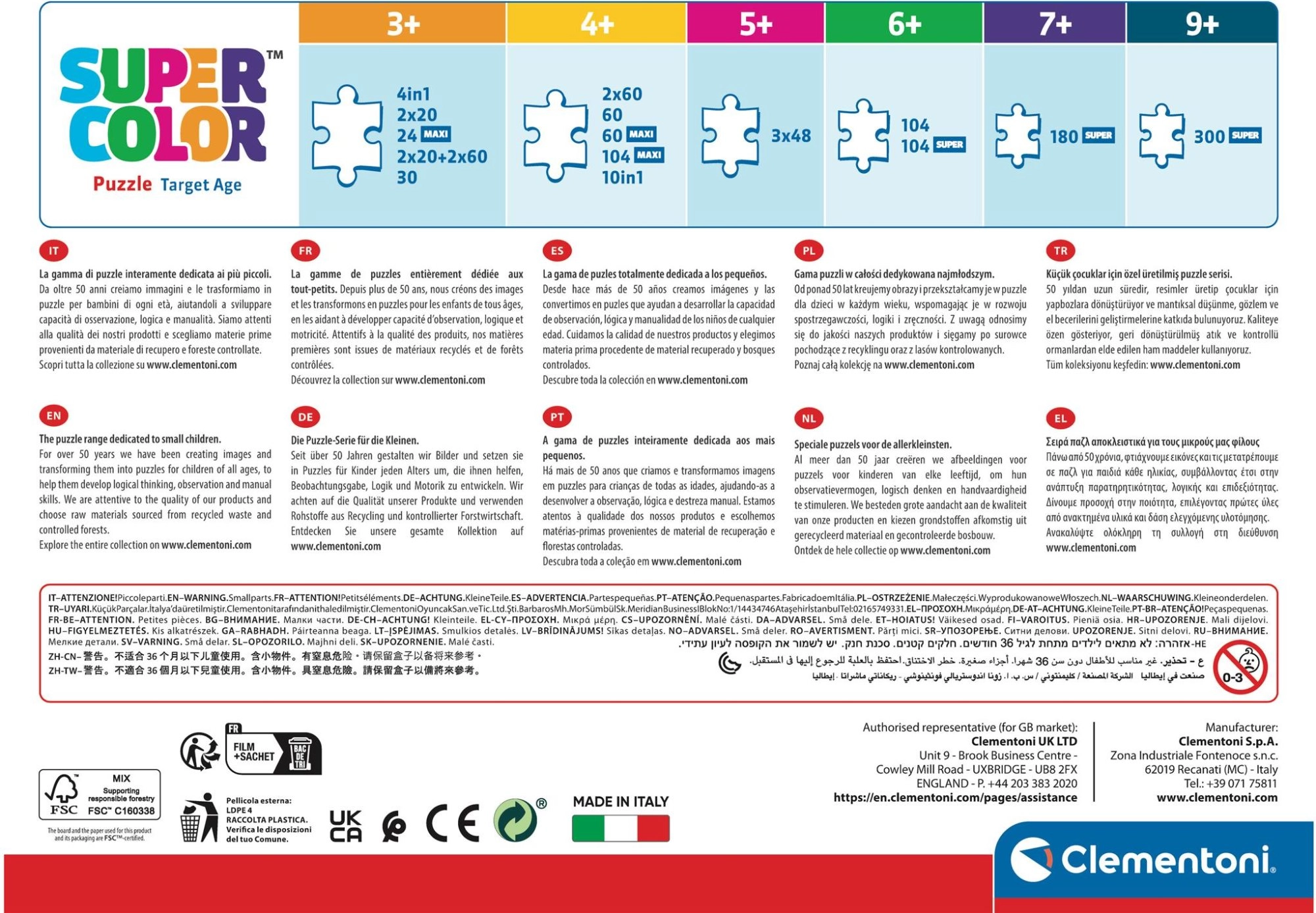 SUPER puzzel met 300 stukjes. De uitzonderlijke afdrukkleuren zijn bereikt dankzij de Super Colour-technologie.