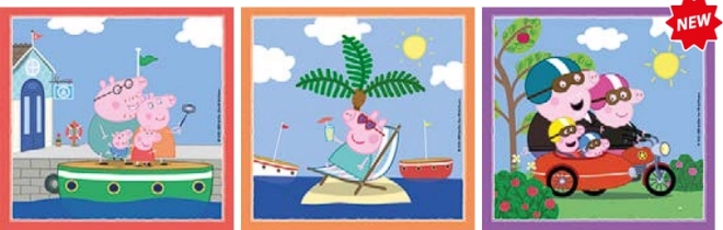 Verrassen de kinderen met een set van drie puzzels met het populaire Peppa Pig-motief. De stukjes zijn precies uitgesneden en eenvoudig te leggen, waardoor ze ook geschikt zijn voor beginnende kleine bouwers. Kwalitatieve materialen en een exclusieve druktechniek garanderen langdurig mooie, heldere en verzadigde kleuren.