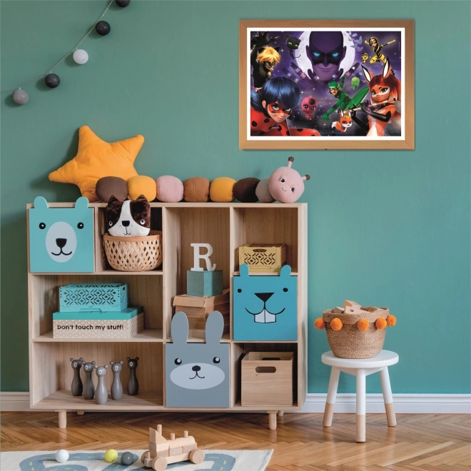 De geliefde helden Magische Lieveheersbeestje en Zwarte Kat in een dynamische scène motiveren om te puzzelen en verrukken fans van de serie.