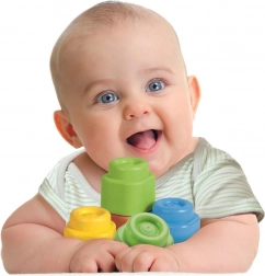 Spelen met deze blokken helpt kinderen bij het ontwikkelen van tast- en gehoorvaardigheden, bevordert motorische activiteiten en roept logisch denken op. Het originele ontwerp, niet-giftige materialen en vanillegeur maken deze blokken een favoriet product zowel bij kinderen als bij hun ouders.