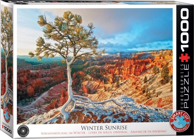 Geniet van ontspanning met de hoogwaardige puzzel van EUROGRAPHICS met het motief van een winterdageraad in Bryce Canyon. Dankzij HDR-fotografie komen realistische kleuren en fijne details prachtig naar voren. De onregelmatige stans met atypische stukvormen zorgt voor een hogere moeilijkheidsgraad en langere speelduur. De set van 1000 stukjes meet na het leggen ongeveer 67,63 × 48,89 cm.