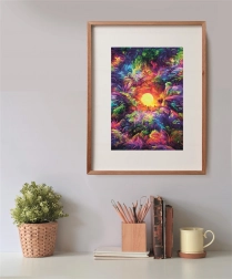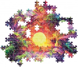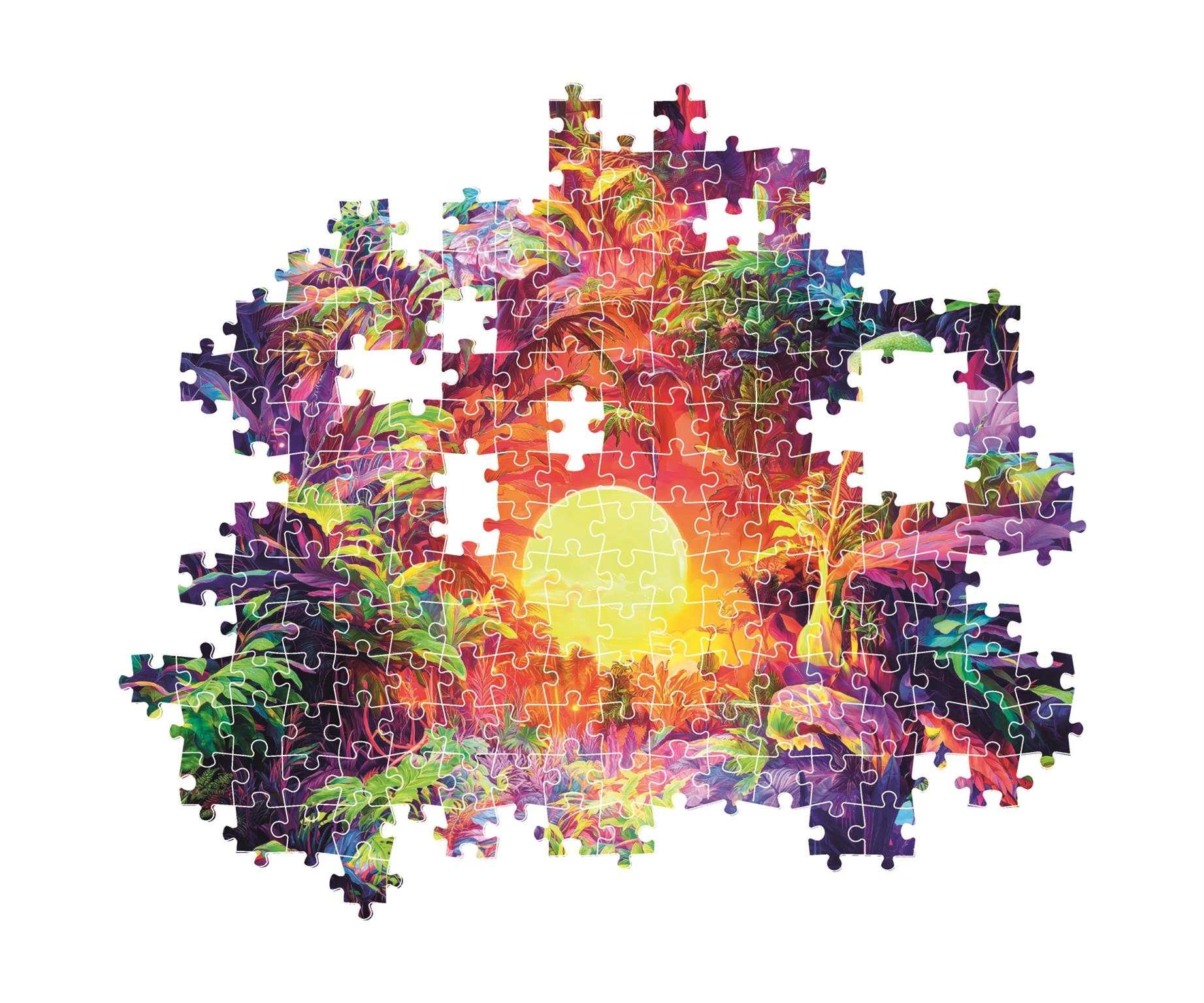 Stap in een levendige compositie met het motief van een psychedelische dageraad in een tropische jungle. De compacte verpakking bespaart ruimte en milieu, maar biedt toch een volwaardige puzzelervaring. Kwalitatieve bedrukking en precieze stans zorgen voor soepel passend leggen en slijtvastheid.