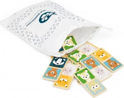 Ga met de kinderen op avontuur in de dierenwereld met het houten domino Bosdieren. Elk van de 28 stukjes is versierd met kleurrijke dierenafbeeldingen en alle stukjes passen comfortabel in kleine kinderhanden.
