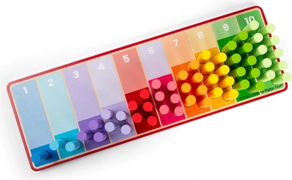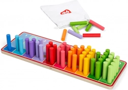 Regenboogtelstokken zijn de ideale keuze voor kinderen vanaf 18 maanden die willen leren tellen en kleuren herkennen. Het speelgoed bevat een houten bord met gekleurde secties en 55 gekleurde stokken om in deze secties te plaatsen. Alle onderdelen van dit product zijn gemaakt van FSC® gecertificeerd hout, waardoor ze niet alleen veilig zijn voor kinderen, maar ook milieuvriendelijk.
