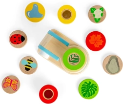 - 10 houten schijven met insecten- en plantenafbeeldingen zorgen voor uren speelplezier en introduceren kinderen tot de basisprincipes van microscopie.