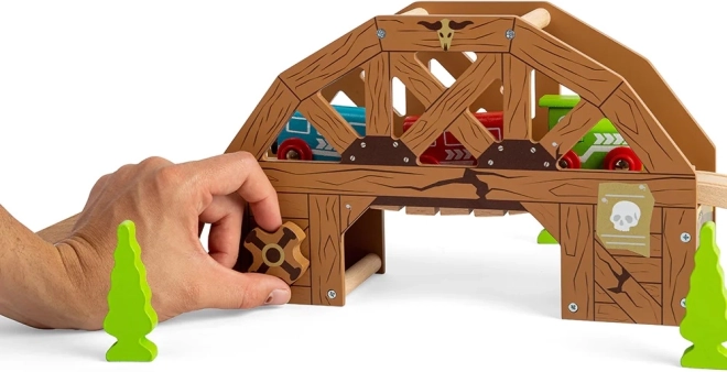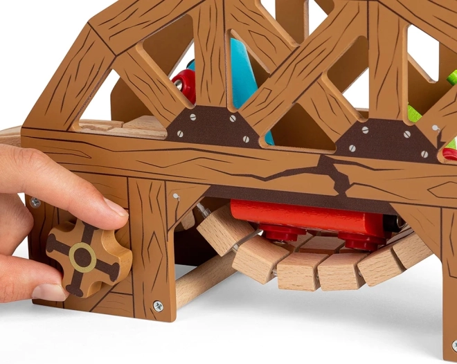 De brug is uitgerust met een draaiknop waarmee je de brug kunt kantelen en extra dynamiek toevoegt aan je treinenavonturen.