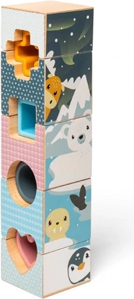 De Arctische Toren helpt cognitieve vaardigheden te ontwikkelen met houten en siliconen onderdelen die zijn ontworpen met arctische dierenmotieven.