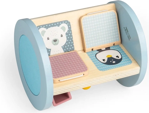 Dankzij het ontwerp biedt de cilinder veel speelmogelijkheden en ontwikkelt het tegelijkertijd de vaardigheden van het kind.