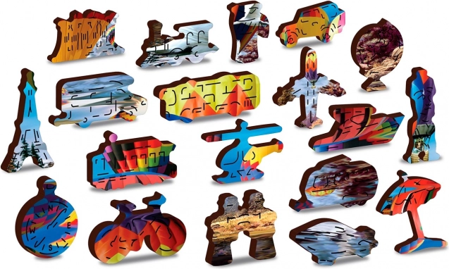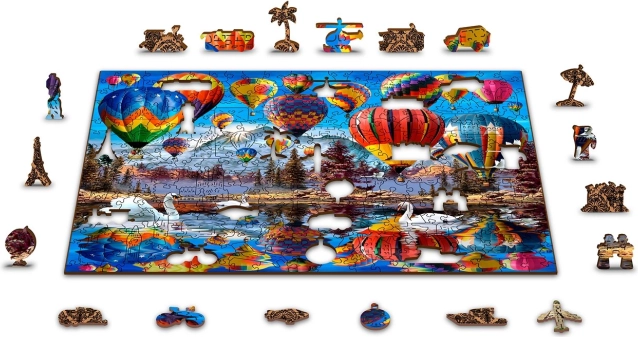 Een elegante en leuke uitdaging voor puzzelliefhebbers. De houten puzzel met luchtballonmotief biedt een unieke ervaring dankzij 61 speciaal gevormde stukjes in de vorm van dieren, gebouwen en voorwerpen. Sommige kunnen als kleine figuurtjes worden neergezet, waardoor de puzzel een geweldig cadeau en een stijlvolle decoratie is.