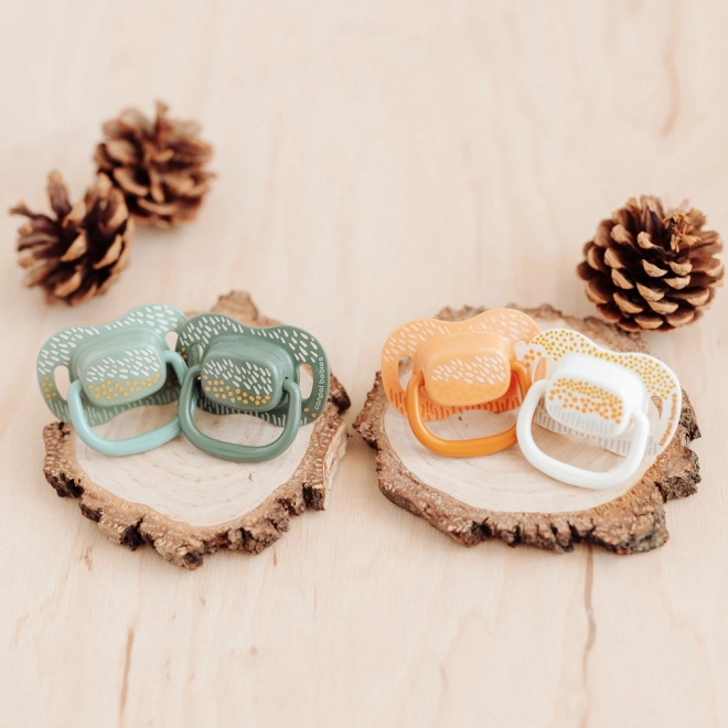 Hypoallergeen siliconen van de hoogste kwaliteit vergemakkelijkt de acceptatie van de fopspeen en ondersteunt natuurlijk zuigen.