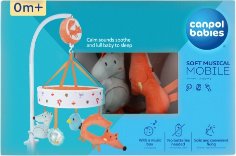 Stel je baby gerust en ondersteun de ontwikkeling vanaf de eerste levensdagen met de pluche mobiel CANPOL Babies uit de FOX-collectie. Dankzij het handmatig opwindbare mechanisme zijn er geen batterijen nodig en biedt hij zachte melodieën, pluchen figuurtjes en betrouwbare bevestiging aan het ledikant. De mobiel stimuleert zicht, gehoor en oog-handcoördinatie en maakt het inslapen gemakkelijker.