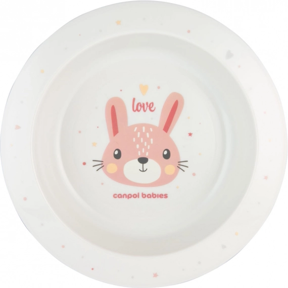 De Canpol babies Cute Animals kinderkom met een inhoud van 270 ml maakt de eerste hapjes en dagelijkse maaltijden leuker dankzij het vrolijke konijnenmotief. Hij is gemaakt van hoogwaardig BPA-vrij materiaal, geschikt voor de magnetron en vaatwasserbestendig, heeft een praktische vorm voor gemakkelijk vasthouden en een verhoogde rand voor comfortabel opscheppen. Ideaal voor kinderen vanaf 4 maanden.