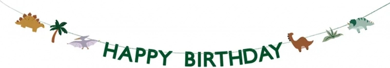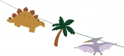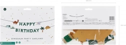 Dino banner met de tekst 'Gefeliciteerd met je Verjaardag' van papier, gemengde kleuren. Hoogte ca. 11 cm, lengte van het touw ca. 4,5 m. U kunt het product zelf monteren.