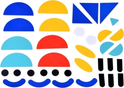 Vrolijke geometrische stukjes van prettig materiaal ondersteunen de training van fijne motoriek, het herkennen van kleuren en vormen, en het ruimtelijk inzicht.