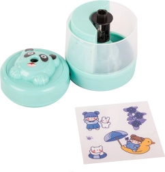 De set bevat diverse stickers om het uiterlijk van de puntenslijper te personaliseren, ideaal voor kinderen en hun creativiteit.