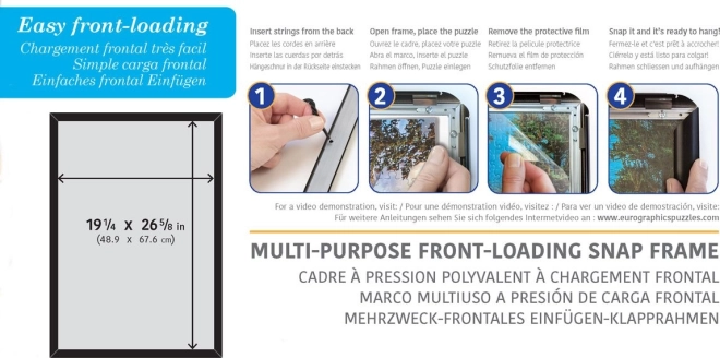 Ontdek de efficiënte manier om uw puzzels tentoon te stellen met de kliklijsten van Eurographics. Deze innovatieve kliklijst is ontworpen voor puzzels van 48,89 x 67,63 cm, inclusief verschillende soorten puzzels zoals Eurographics 1000 stukjes of Eurographics XL 500 stukjes. Met de mogelijkheid om zowel verticaal als horizontaal op te hangen, biedt het flexibele plaatsingsopties.