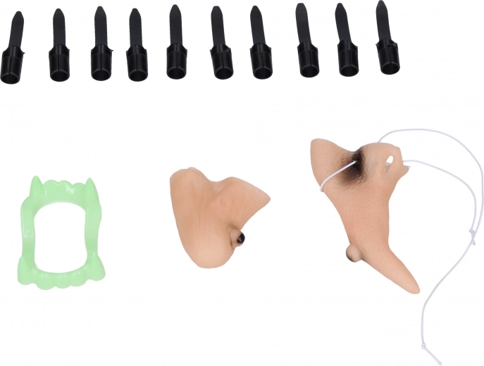 - Complete set – hoed, kin, neus, 10 vingers met nagels en tanden