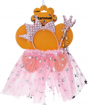 Verander jezelf in een handomdraai in een betoverende fee met deze charmante carnavalsset. De set bevat een rok, een haarband met versiering en een toverstaf. Ideaal voor carnavals, kinderfeestjes en sprookjesachtige fotoshoots.