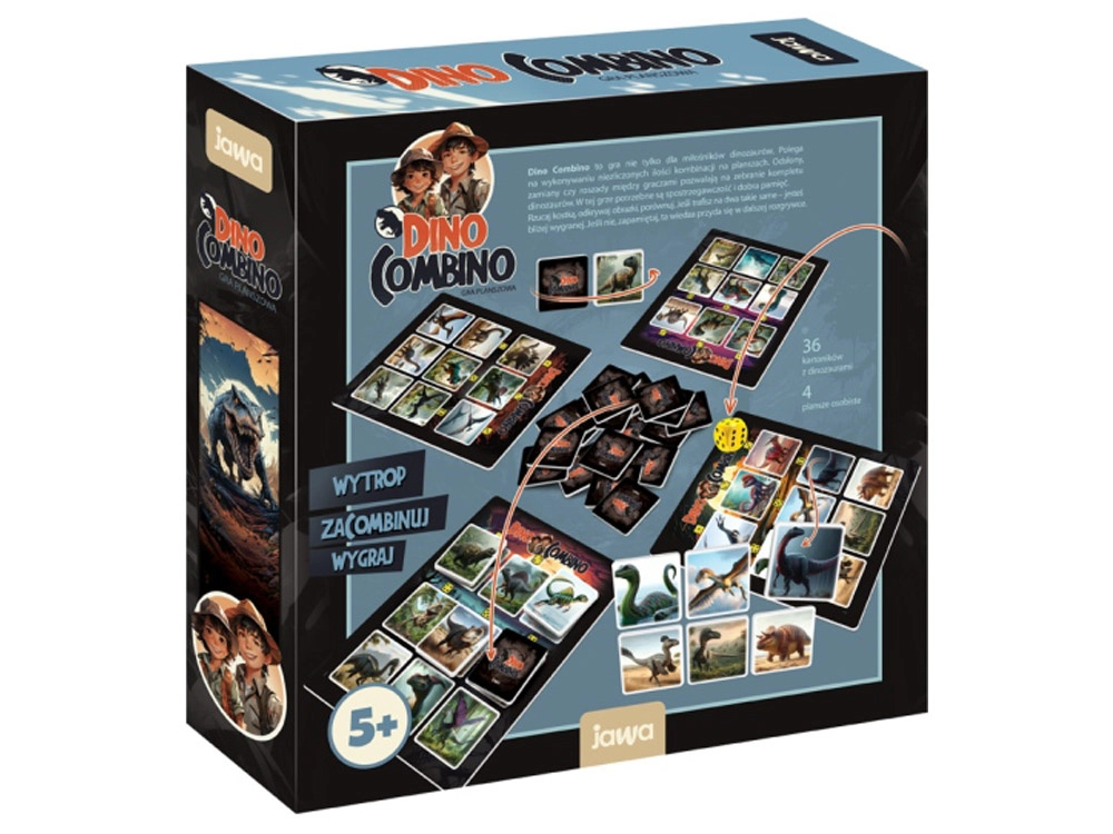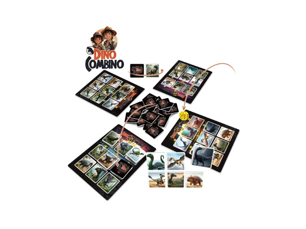 Het spel DINO Combino is een geweldige keuze voor alle dinofans. Het doel is om als eerste je spelbord met de juiste dinosaurussen te vervolledigen. Spelers gooien om de beurt met de dobbelsteen, draaien kaartjes om en koppelen ze slim. Succes hangt af van een goed geheugen, scherpzinnigheid en slimme combinaties.