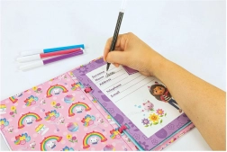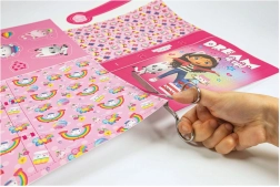 Met deze uitgebreide set om een dagboek te maken creëren kinderen gemakkelijk hun eigen originele notitieboek vol kleuren, stickers en favoriete personages uit de serie Gabby’s Magische Huis. Voeg alleen lijm en een schaar toe en niets staat de verbeelding in de weg. In het dagboek vind je ook een geheime zak voor herinneringen – tickets, briefjes of kleine boodschappen.