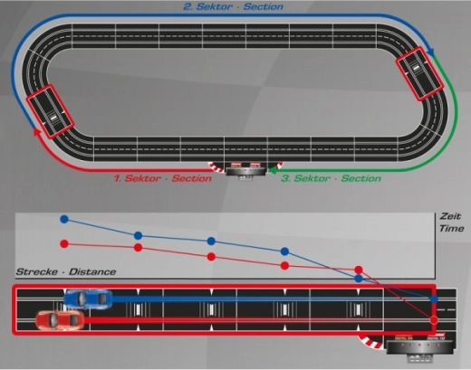 Breid je CARRERA-racebaan uit met nauwkeurige tussentijdmeting en maak van elke rit een echt race-evenement. De Check Lane-module maakt het mogelijk om de baan in sectoren te verdelen (tot 3) en de tijden te vergelijken van afzonderlijke secties in de modi DIGITAL 132 en DIGITAL 124.