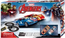 De Carrera GO raceset met helden van Avengers brengt dynamisch plezier voor het hele gezin. De baan van 2,4 m met auto’s van Captain America en Iron Man biedt rechte stukken, bochten en een brug. Voeding via batterijen of transformator (niet inbegrepen), het systeem is compatibel met GO!!! en dankzij klemmen eenvoudig te monteren.