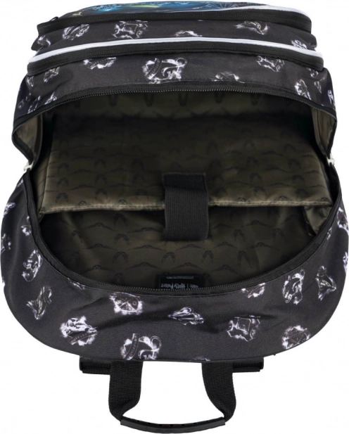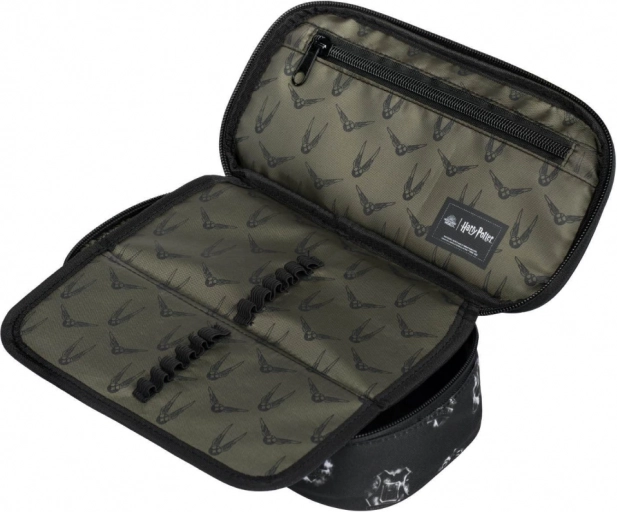 Complete schoolsset voor fans van Harry Potter met een ergonomische rugzak met ruimte voor een 15″-laptop, een ruime etui en een praktische gymsack. De rugzak biedt een laag gewicht van 900 g, inhoud 25 l, waterafstotend materiaal en reflecterende elementen voor veiligheid.
