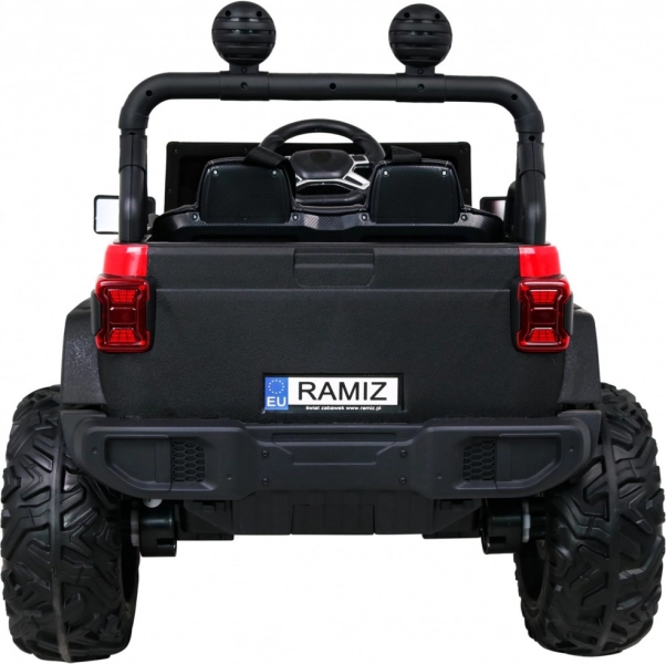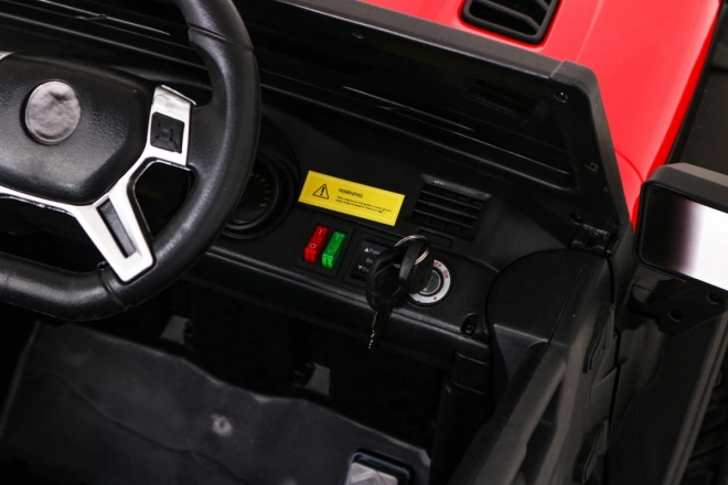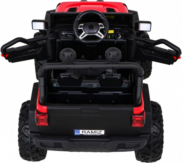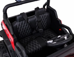 Het interieur verrast met een geventileerde zitting van eco-leer met gordels, start met sleutel en een multifunctioneel audiopaneel met Bluetooth, USB, MP3 en SD-slot. Ouders waarderen de 2,4 GHz afstandsbediening met drie snelheden en Stop-functie. Een praktische achterkoffer biedt ruimte voor speelgoed en kleine spullen voor onderweg.