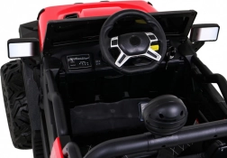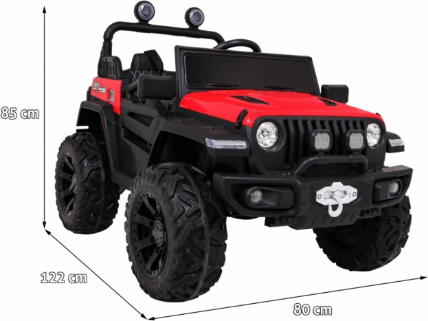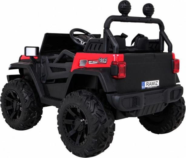 De elektrische Master of Terrain 4x4 biedt een realistische offroad-rijbeleving. Dankzij de variabele 2×4/4×4 aandrijving, krachtige motoren en grote EVA-wielen 35 × 15 cm kan hij omgaan met oneffenheden en gras. Vering op de voor- en achteras verhoogt comfort en stabiliteit, terwijl LED-verlichting en kwalitatieve veiligheidsgordels zorgen voor een veilige rit.