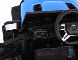 Jonge bestuurders waarderen starten met een sleutel, realistische LED-verlichting en uitgebreide audiomogelijkheden – Bluetooth, MP3, USB, SD en geluiden op het stuur. Ouders houden volledige controle dankzij de 2,4 GHz afstandsbediening met drie snelheden en een Stop-knop voor de veiligheid. Te openen deuren met vergrendeling, een zitje van geventileerd eco-leer met veiligheidsgordels en een achterste opbergvak maken de uitrusting compleet.