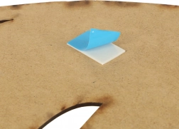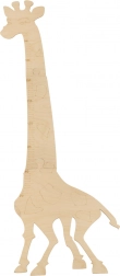 De afzonderlijke onderdelen passen precies in elkaar en vormen na montage een stabiele giraf die klaar is om aan de muur te worden bevestigd.