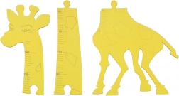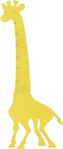 De gele giraf met duidelijke hoogtemarkeringen brengt kleur in de kamer en motiveert kinderen om regelmatig te meten.
