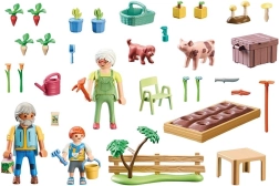 Beleef de magie van het platteland met de Playmobil Country Tuinset bij Opa. Deze rijk uitgeruste set voor kinderen vanaf 4 jaar stimuleert creatief spel en fantasieontwikkeling. Inclusief figuren van opa, kleinzoon, biggetjes en een hondje, die samen met diverse tuingereedschappen en planten eindeloze mogelijkheden bieden voor rollenspel in een landelijke omgeving.