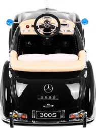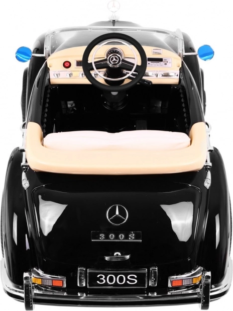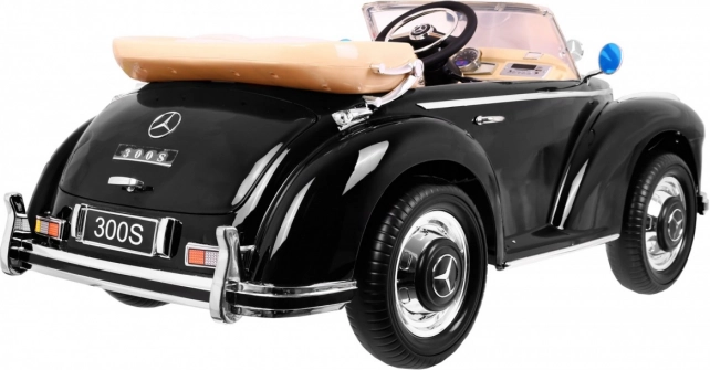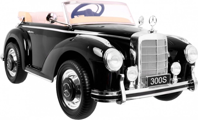 Geniet van een unieke rit in klassieke stijl. De MERCEDES-BENZ 300S kinderauto in elegant gelakt zwart combineert tijdloos design met moderne techniek. Dankzij twee 35 W-motoren en een 12 V/10 Ah-accu rijdt hij soepel vooruit en achteruit, met comfortabele vering op de vooras.