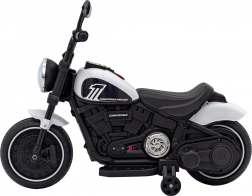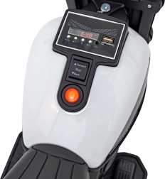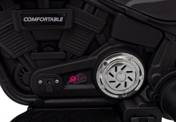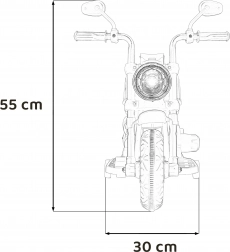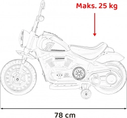 Stijlvolle elektrische kinderchopper voor een realistische rijervaring voor jonge bestuurders. Voorzien van een krachtige 20 W motor, veilige zijwieltjes, LED-verlichting en een uitgebreid audiopaneel met FM-radio, MP3, Bluetooth, USB, SD en AUX. De compacte en lichte constructie is ideaal voor de eerste ritjes binnenshuis en in de tuin.