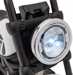De felle LED-koplamp verhoogt de zichtbaarheid en versterkt de rijbeleving zoals op een echte motor.