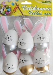 Decoratieve kunststof beschilderde eieren om op te hangen 6 cm, 6 stuks